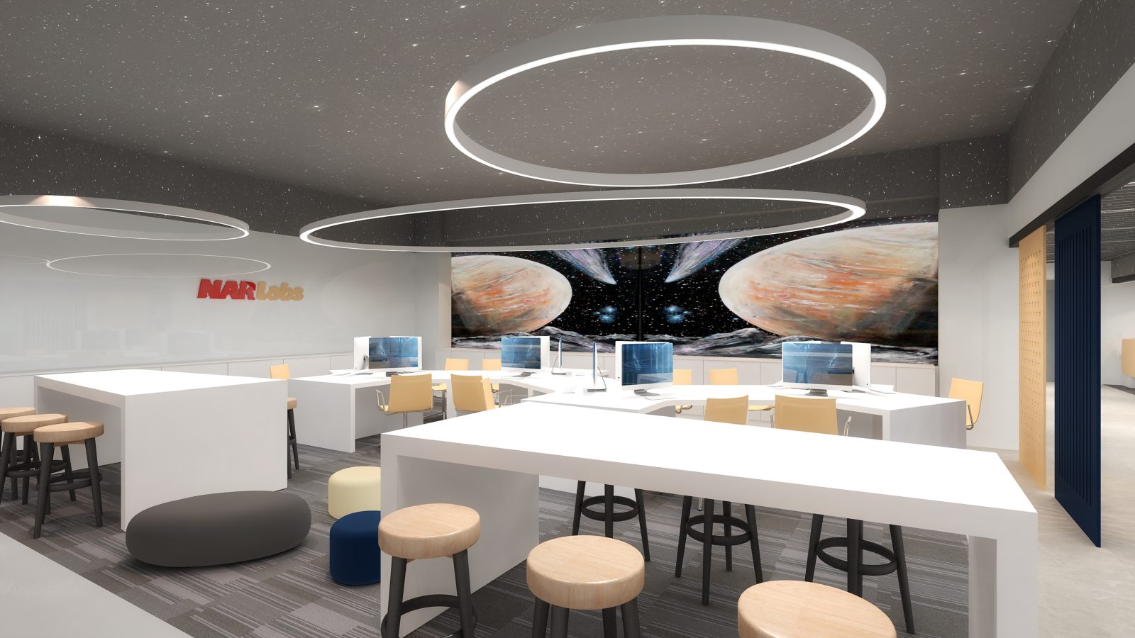 國家太空中心整合測試大樓增建工程設計監造,旨在透過建築與室內裝修的深度整合,重塑台灣航太科研的門戶形象。設計上將舊大樓外牆導入星球弧面元素,與新建大樓金屬切角入口呼應,營造出俐落且具量體感的「漂浮科技門面」。內部規劃包含 100K 真空艙無塵實驗室、190 席漂浮感國際演講廳,以及導入 Hotdesk 智慧辦公系統的研究空間。透過冷凝水回收系統創造出的七樓空中明鏡水池講堂,更是結合建築節能與太空浪漫意象的點睛之筆。