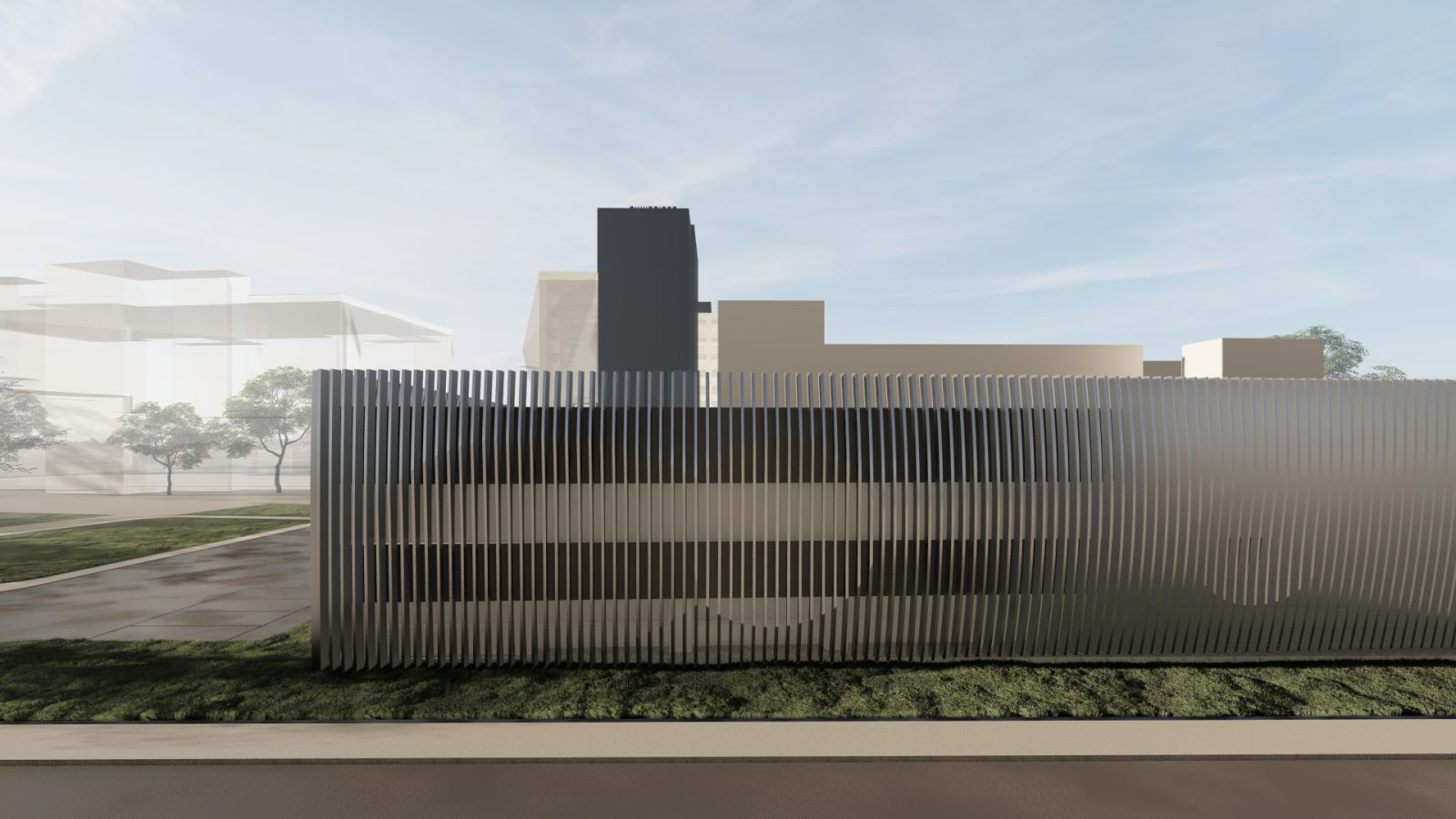 原大樓牆面融入星球弧線元素,透過不同視角的圓球大小變化,消弭既有建築的陳舊感,與新大樓俐落的金屬質地連結,形塑統一的科技形象。