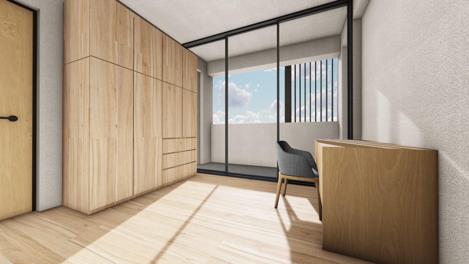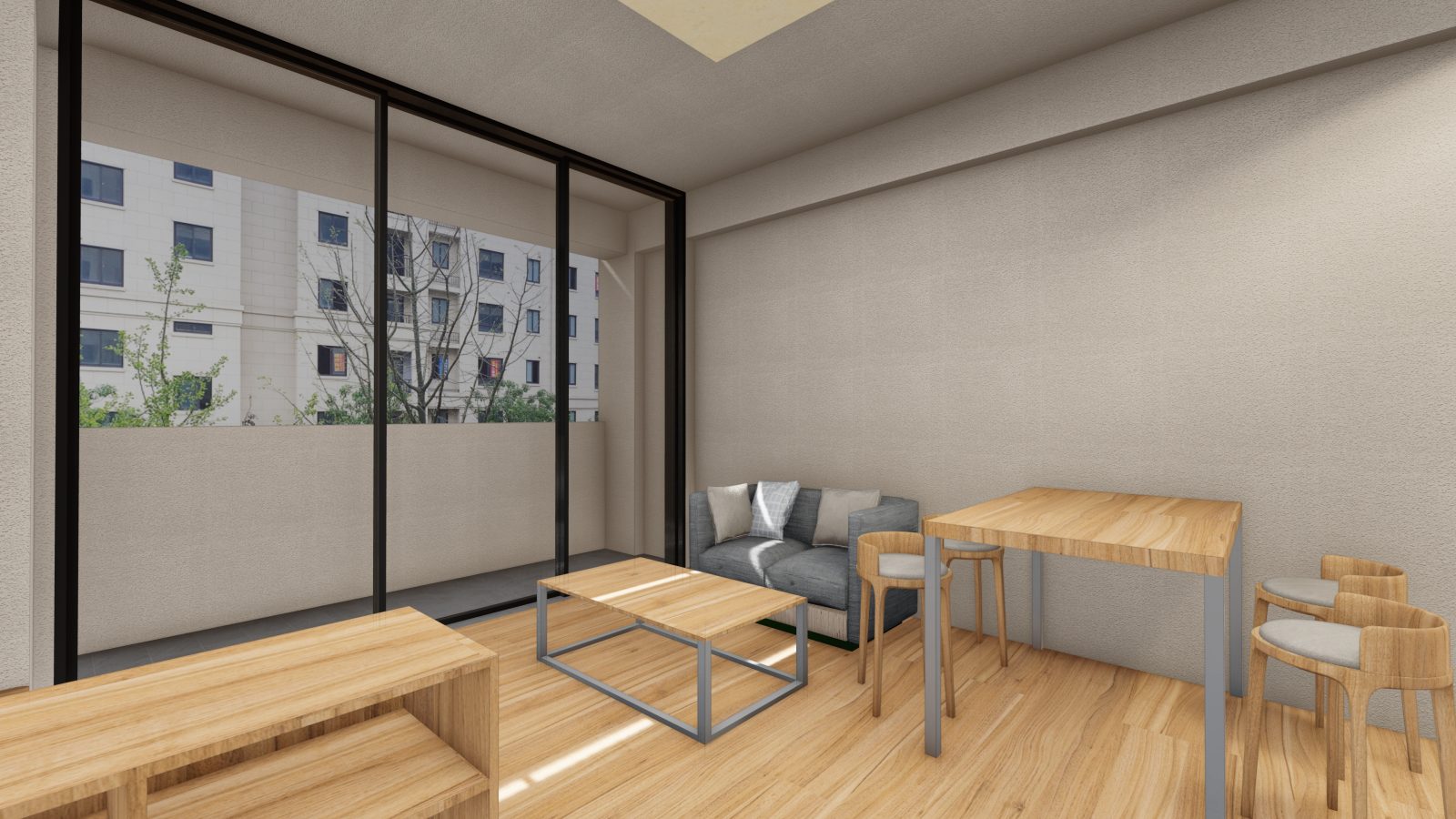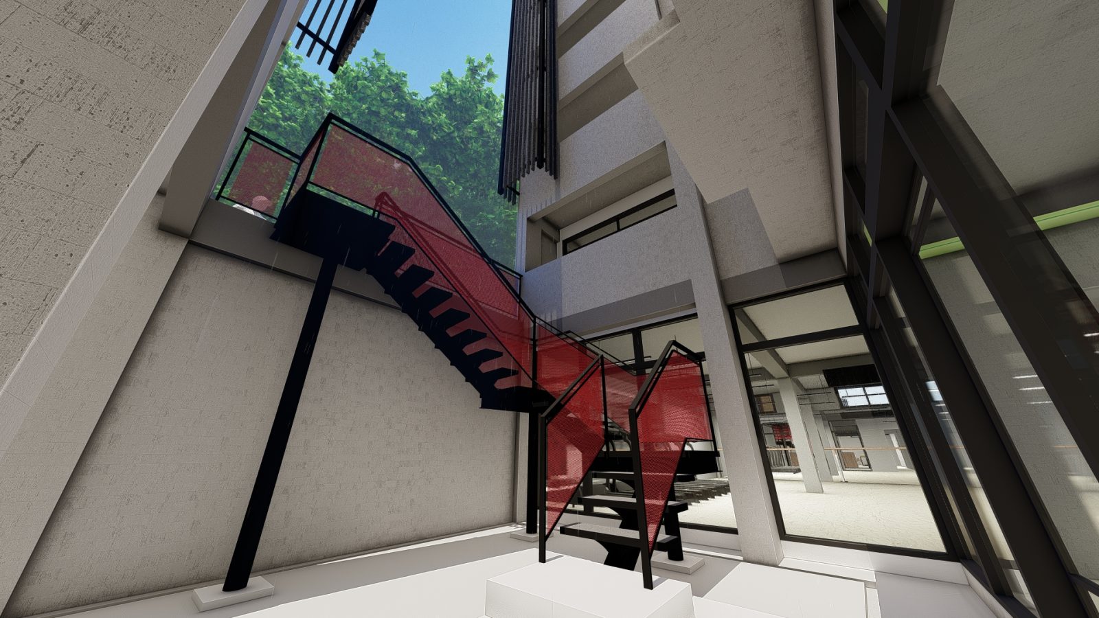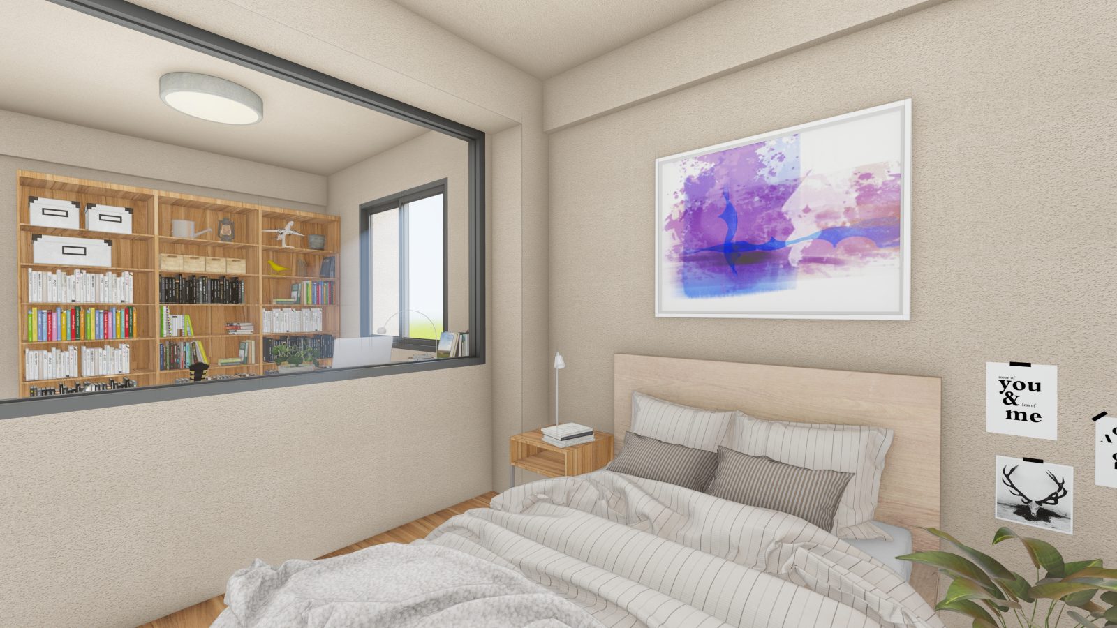 「以師大紅點綴洗鍊外觀,地下一層導入文創圖書館式交流場域,讓宿舍不僅是居住空間,更是激盪研究能量的家。」