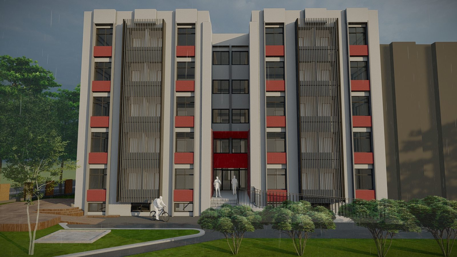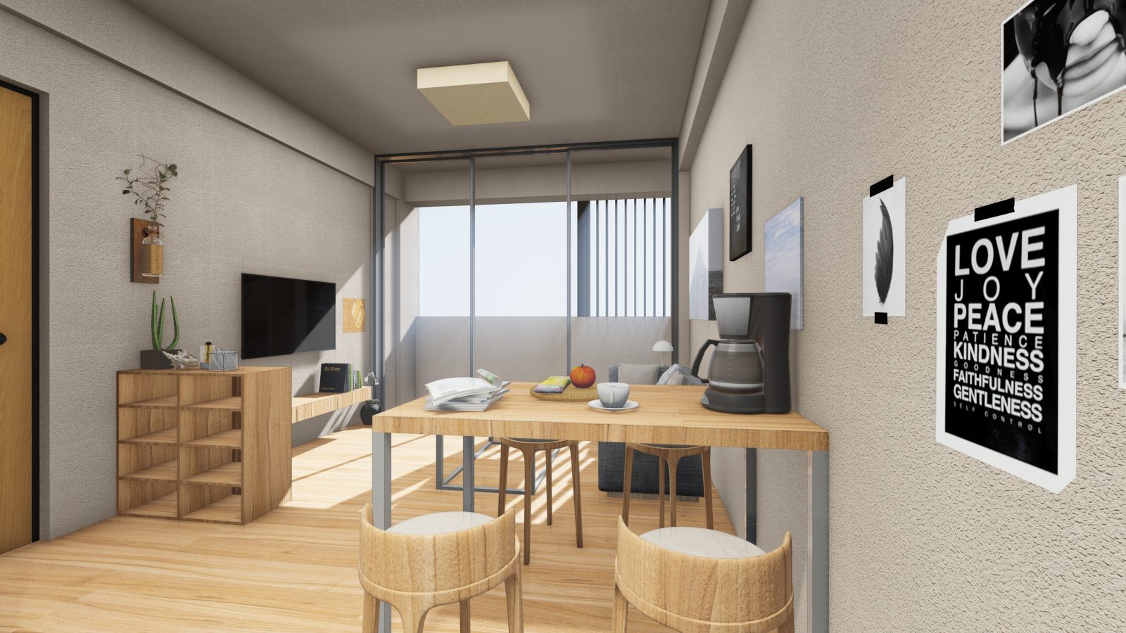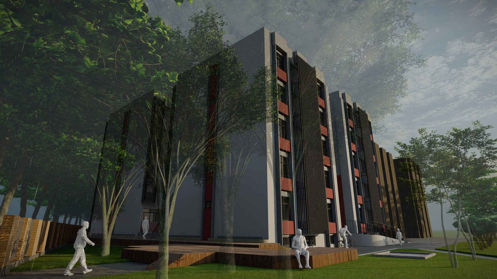 本專案針對師大公館校區研究生宿舍進行全面翻修。外觀以「ㄇ字型」量體重塑門面,運用師大紅與垂直隔柵整合視覺焦點。空間規劃亮點在於 B1 多功能層,將原本的防空避難空間轉化為集健身、咖啡交流、自修閱覽於一體的現代化交誼廳;住宿單元則採胡桃木色家具搭配落地防焰遮光窗簾,建構簡潔、尊貴且大方的生活尺度,為研究生活注入溫暖的人文氣息。