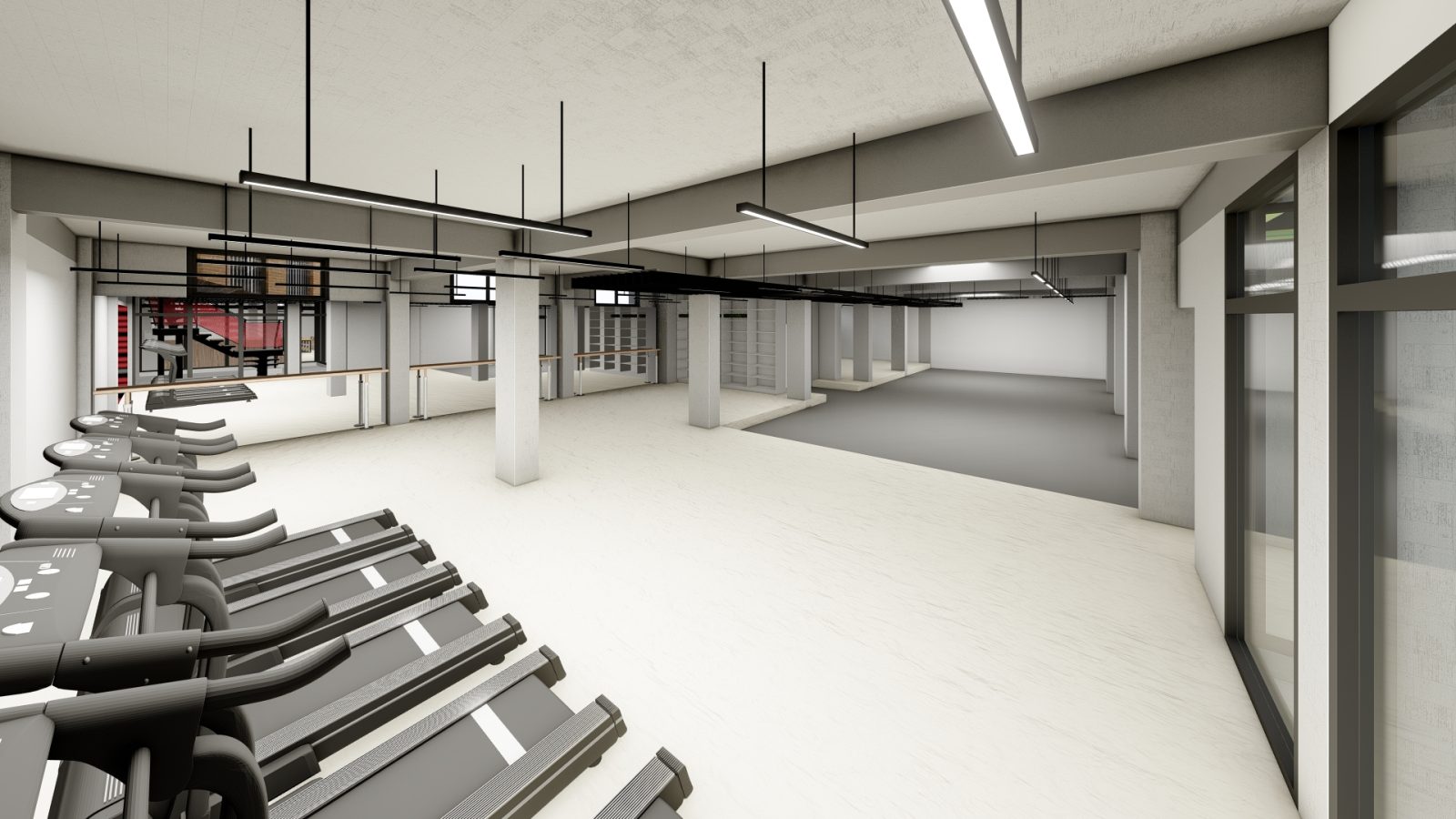 師大紅品牌視覺外牆B1文創風格自修區全方位健身與瑜珈區
