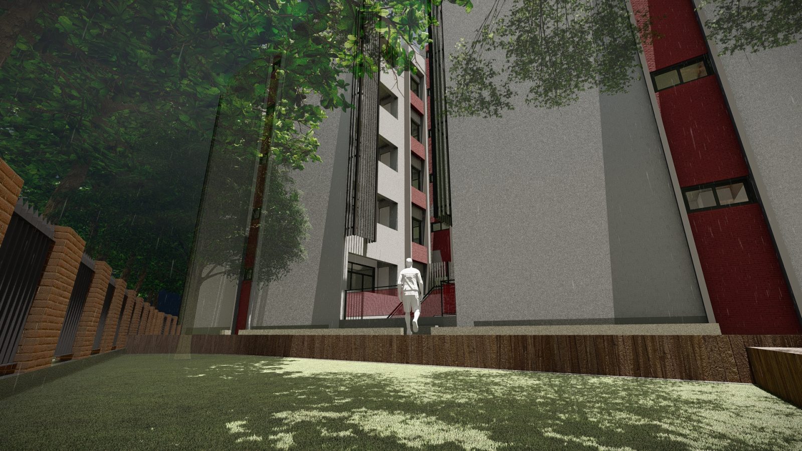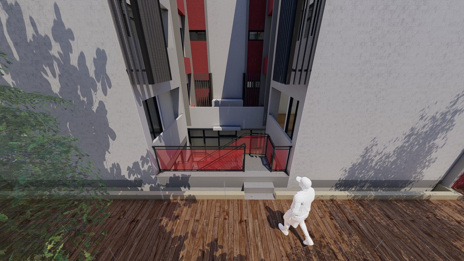 頂樓增設休閒植栽區與共同曬衣空間,改善梯廳無障礙設施,提供使用者課業之餘舒緩壓力的綠色角落。