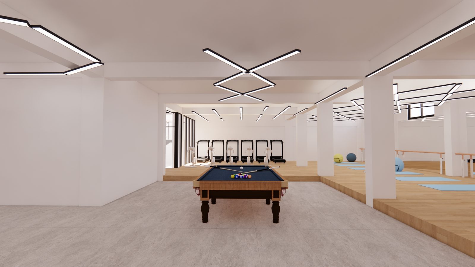 規劃健身房(跑步機/腳踏車)與瑜珈跳舞空間,提供桌球運動區,讓居住者在課後能有完整的運動休憩場所。