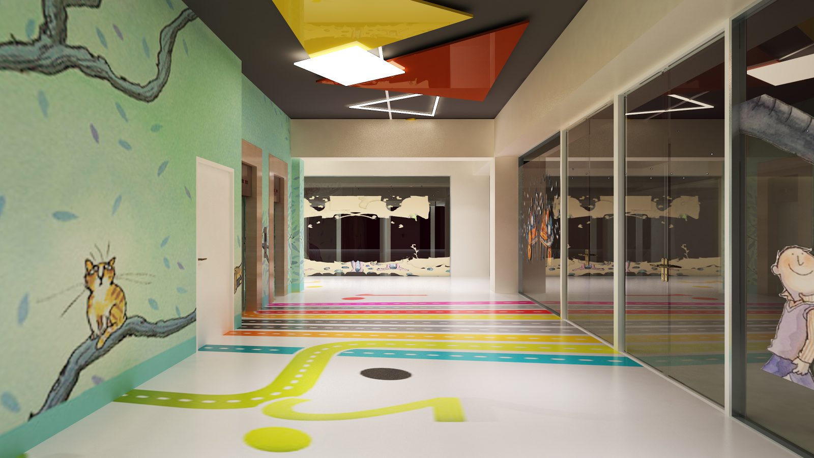 發展遲緩兒療育教室選用柔軟溫馨的配色,並配置家長觀察窗。透過暖色調燈光與心理學安撫色系,緩解孩童在治療過程中的不安感。