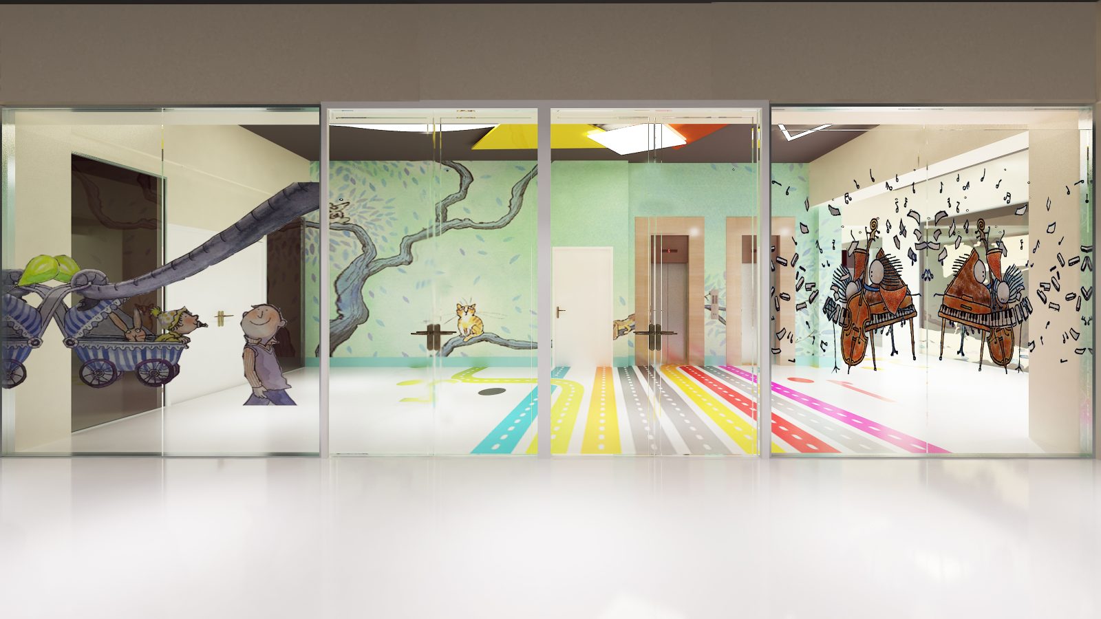 全齡化無障礙環境環境心理學安撫色系弧形擁抱形象牆