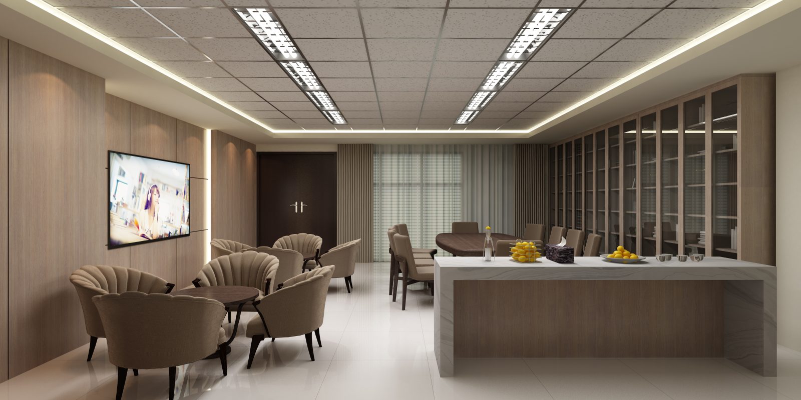 設計計畫:胡桃木色調 / 心理安撫色彩計畫 / 現代化低檯面櫃檯 / 綠色環保低VOC建材
