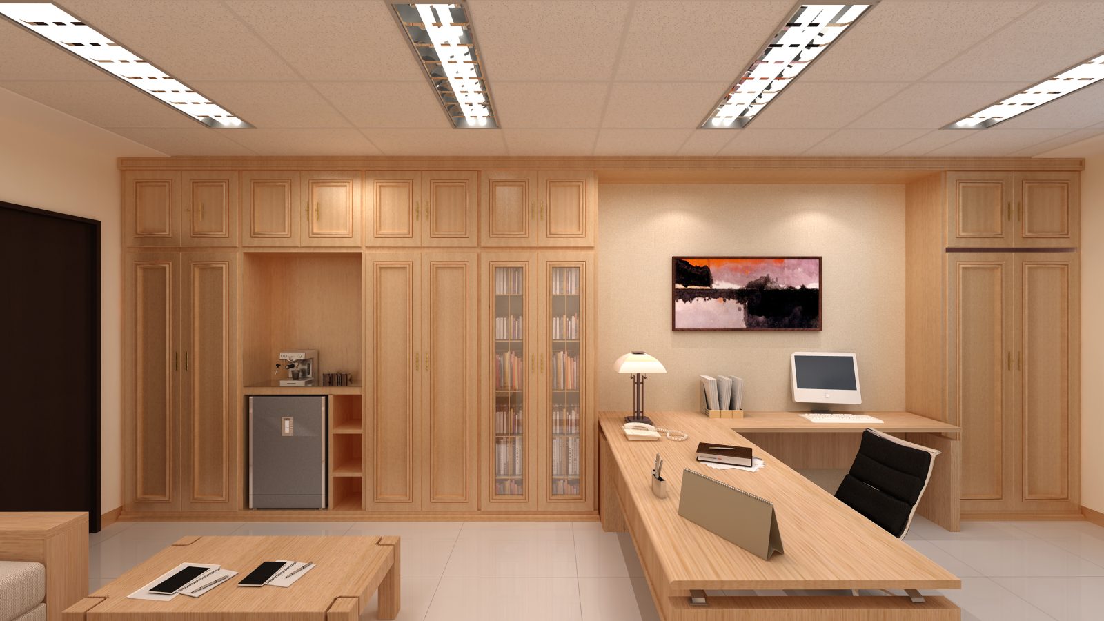 法警辦公區採座位朝外配置,提升反應速度。法官辦公室依據「置衣、洽談、辦公」行為模式規劃最優動線,結合胡桃木家具展現尊貴品味。